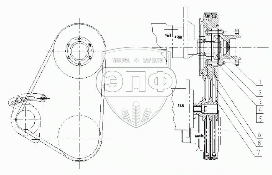 Каталог запасных частей к технике: SDEC SC11CB220G2B1. Pulley group, fan, v-belt group