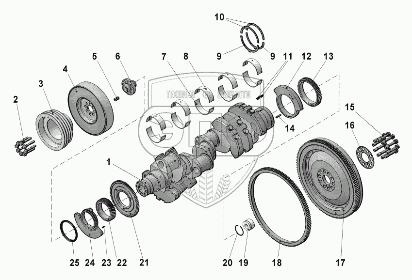 Каталог запасных частей к технике: ТМЗ-8437.10. Коленчатый вал и маховик