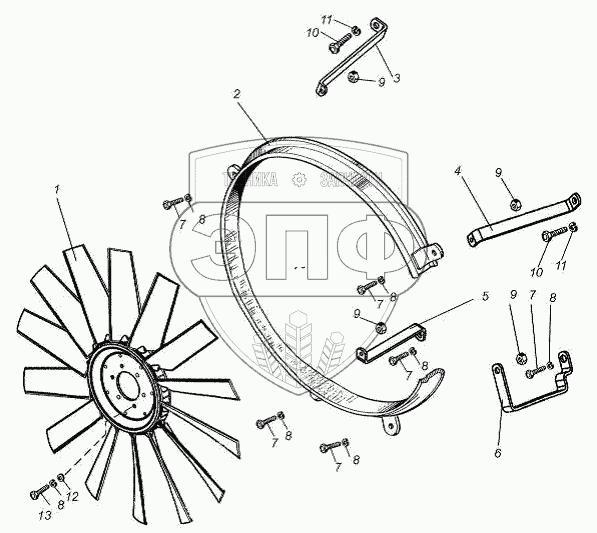 Каталог запасных частей к технике: ТМЗ-8437.10. Вентилятор, кожух вентилятора