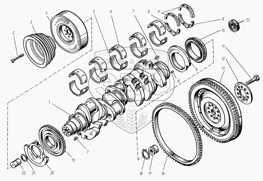 Каталог запасных частей к технике: ТМЗ-8486.10-04. Коленчатый вал и маховик