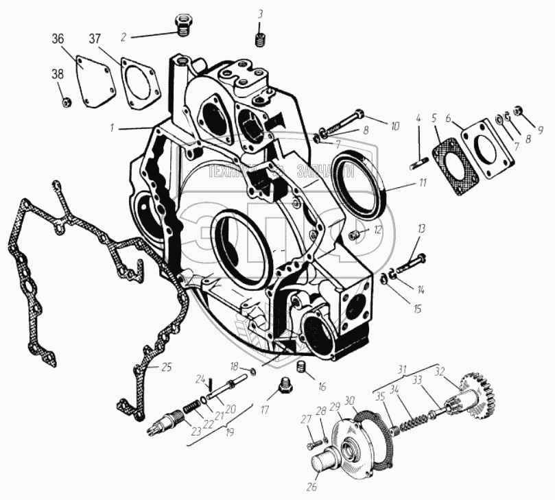 Каталог запасных частей к технике: ТМЗ-8525.10. Картер маховика