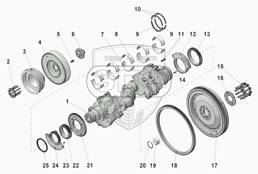 Каталог запасных частей к технике: ТМЗ-8525.10. Коленчатый вал и маховик