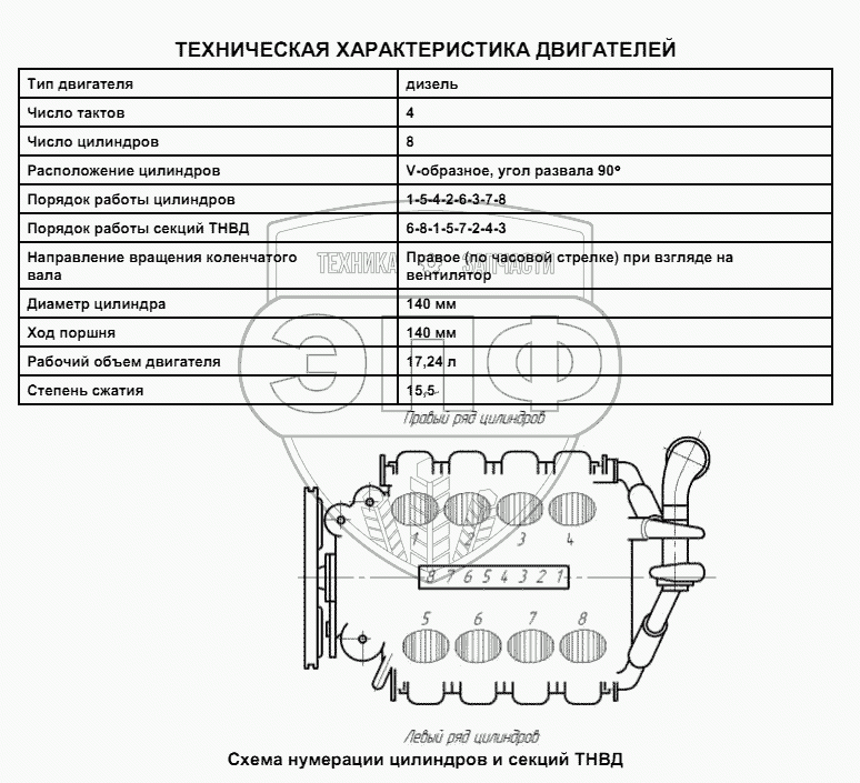Каталог запасных частей к технике: ТМЗ-8525.10. Техническая характеристика двигателей