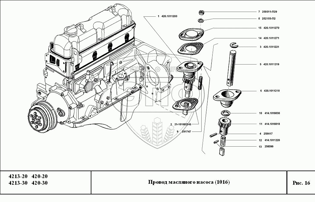 Каталог запасных частей к технике: УМЗ-4213, 420. Привод масляного насоса