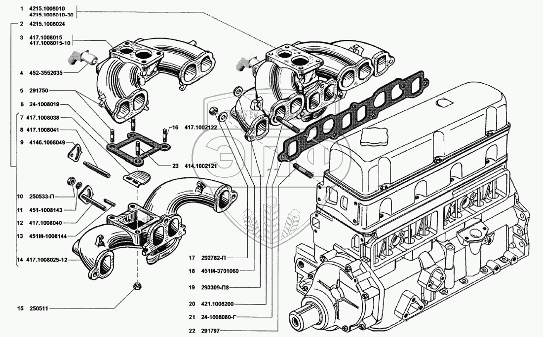 Каталог запасных частей к технике: УМЗ-4215. Газопроводы впускной и выпускной