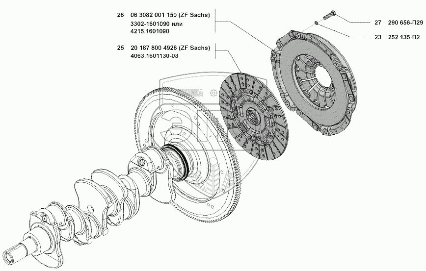 Каталог запасных частей к технике: УМЗ-42164 (Евро 4). Сцепление