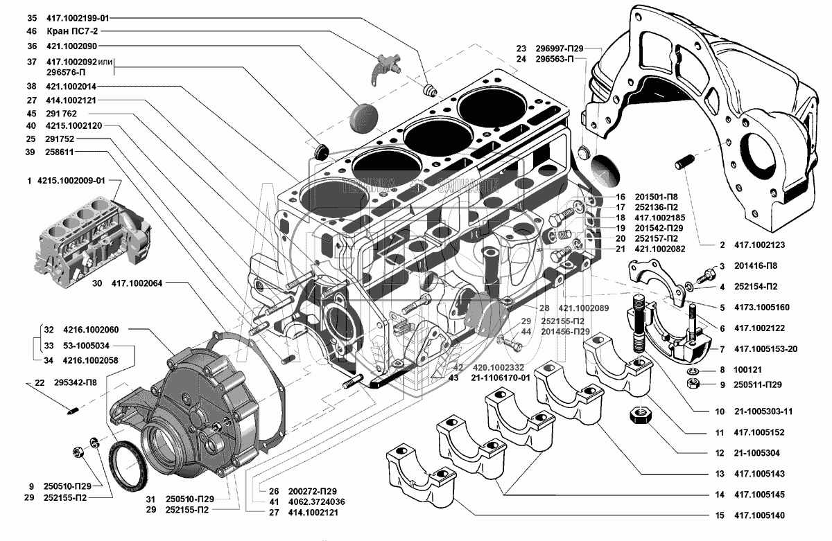 | 14 | 417.1005145 | Крышка второго и третьего подшипников коленчатого вала | Нет на складе | |