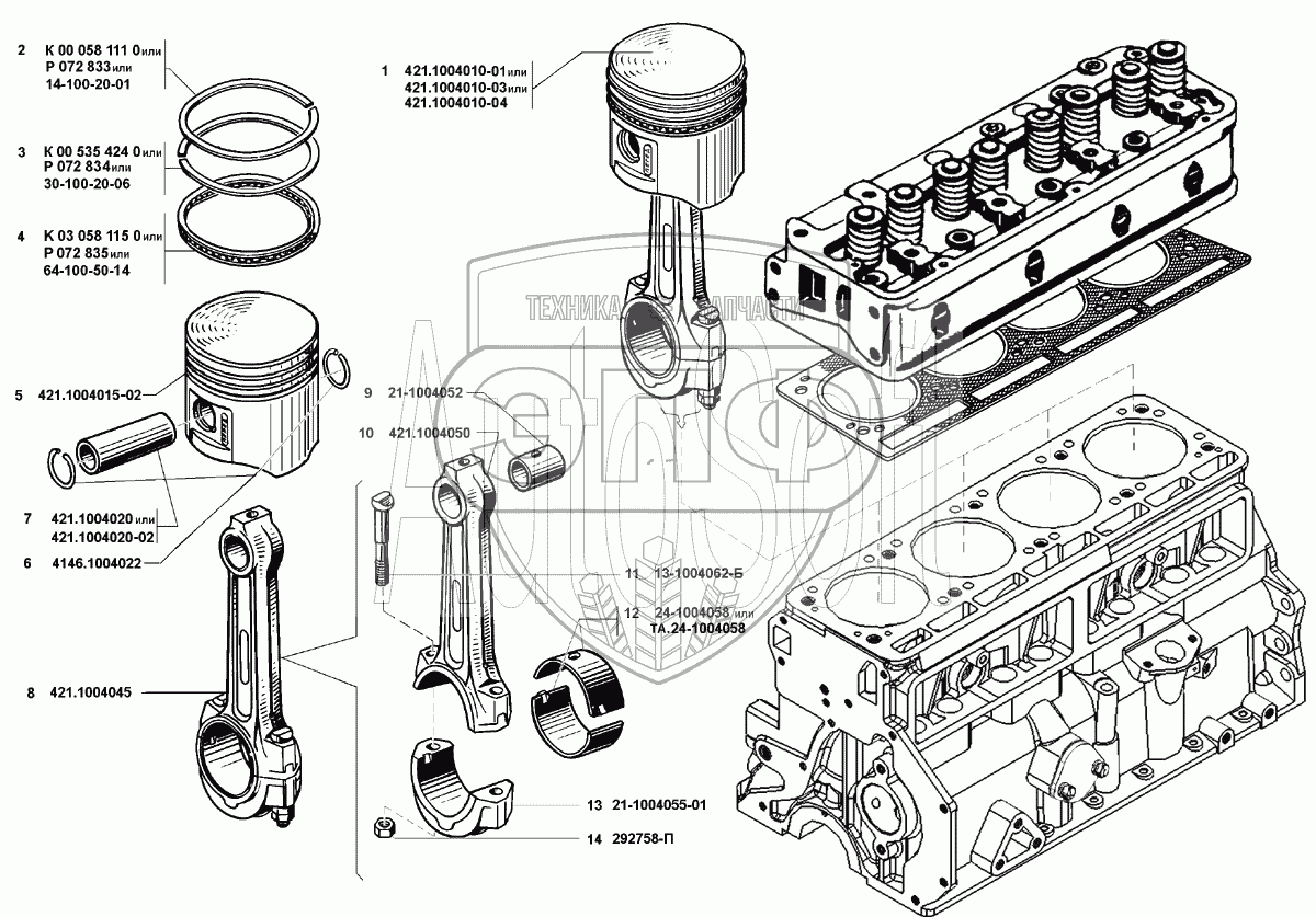 | 1 | 4213.1004010-02 | Поршень и шатун в сборе | Нет на складе | |