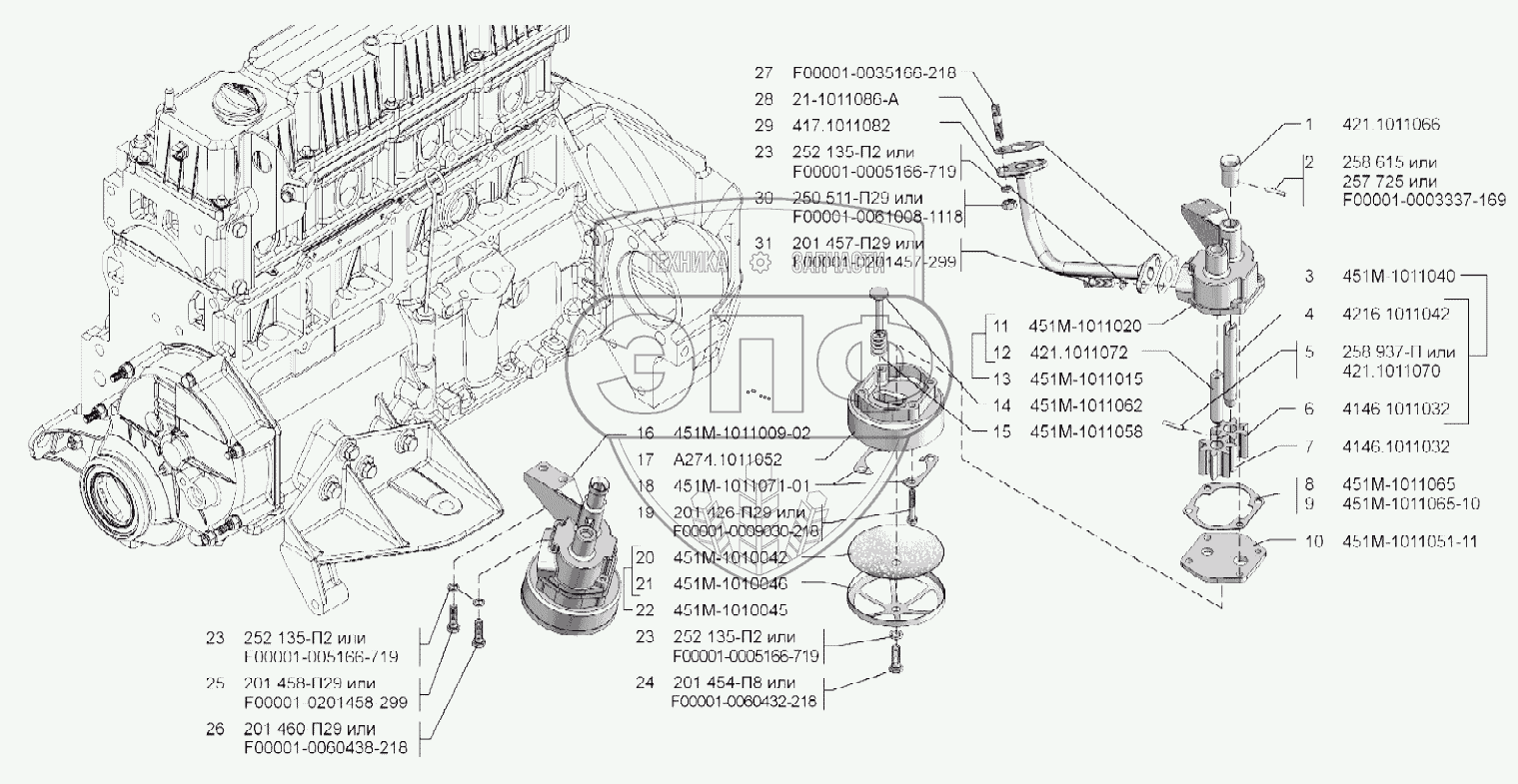 | 16 | 451М-1011009-02 | Насос масляный с маслоприемником в сборе | Нет на складе | |