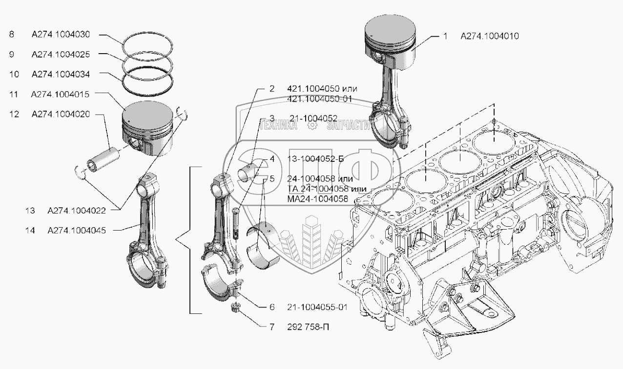 | 1 | А274.1004010 | Поршень и шатун в сборе | Нет на складе | |