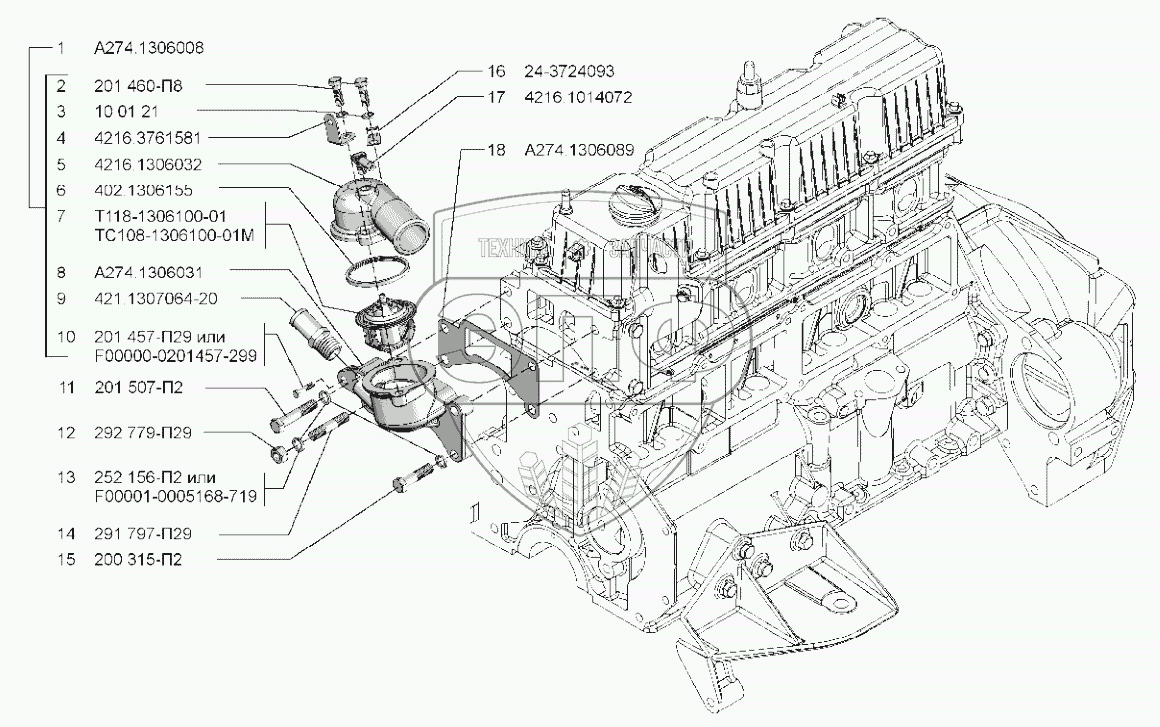 | 18 | А274.1306089 | Прокладка корпуса термостата | Нет на складе |