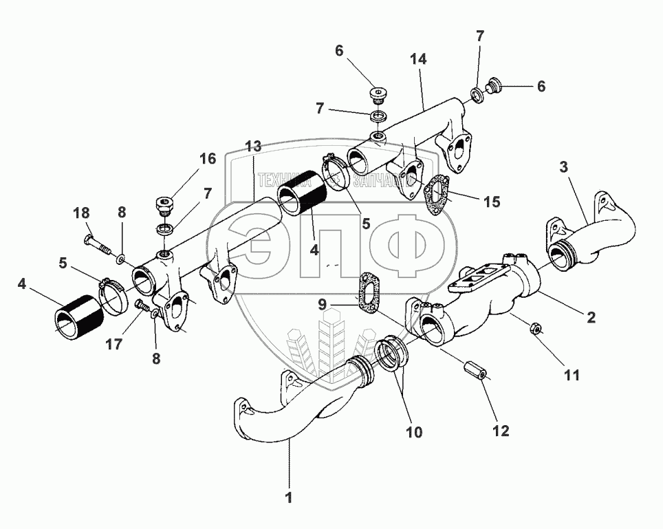 Каталог запасных частей к технике: Valmet 612 DSJL. TURBOCHARGER-INLET AND EXHAUST MANIFOLD
