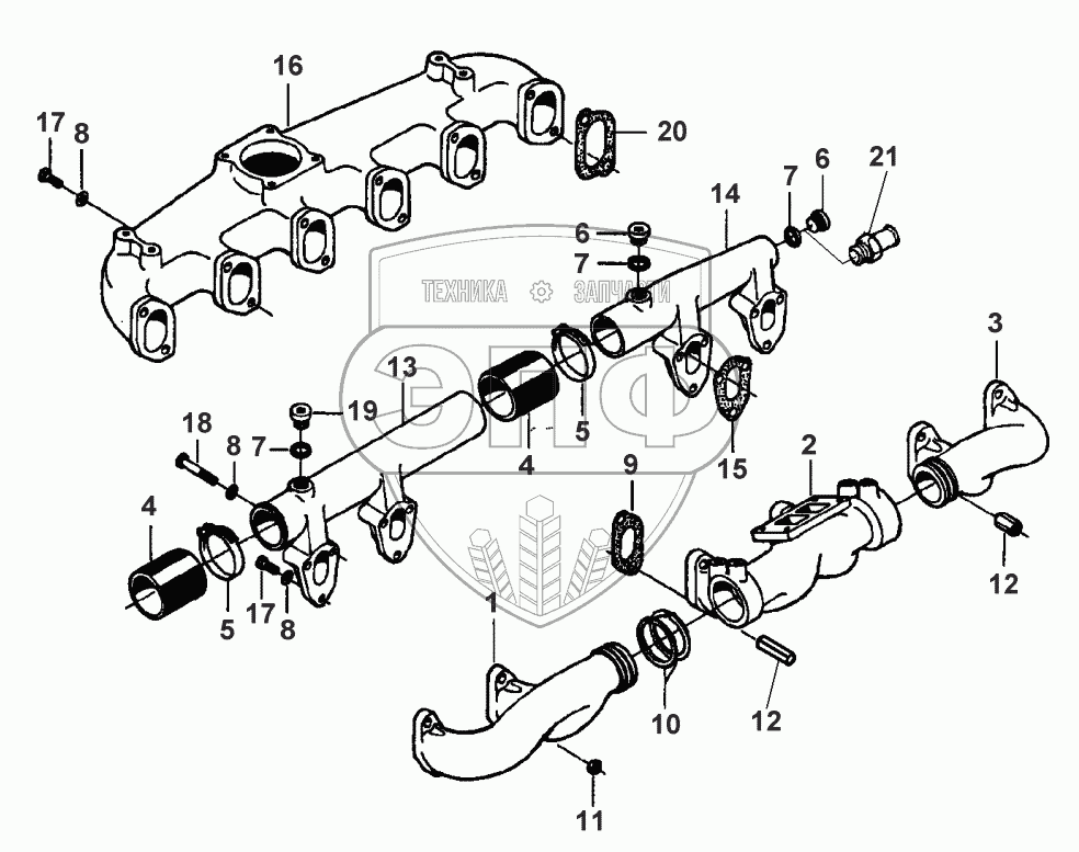 Каталог запасных частей к технике: Valmet 612 DSL. TURBOCHARGER-INLET AND EXHAUST MANIFOLD