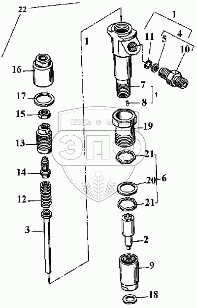 Каталог запасных частей к технике: ВТЗ Д-144. Форсунка 16.1112010