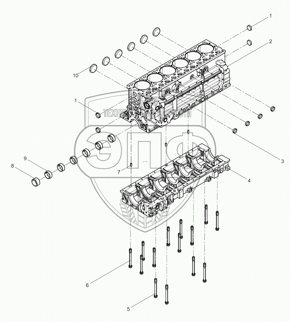 Каталог запасных частей к технике: Weichai 6M11 DHM16D0001. Сrankcase pre-assembly