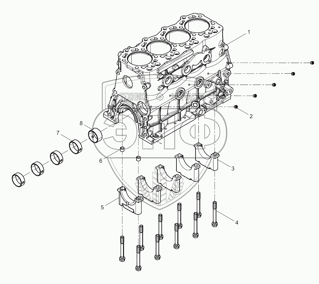 Каталог запасных частей к технике: Weichai BAUDOUIN 4M06G44. Crankcase pre-assembly