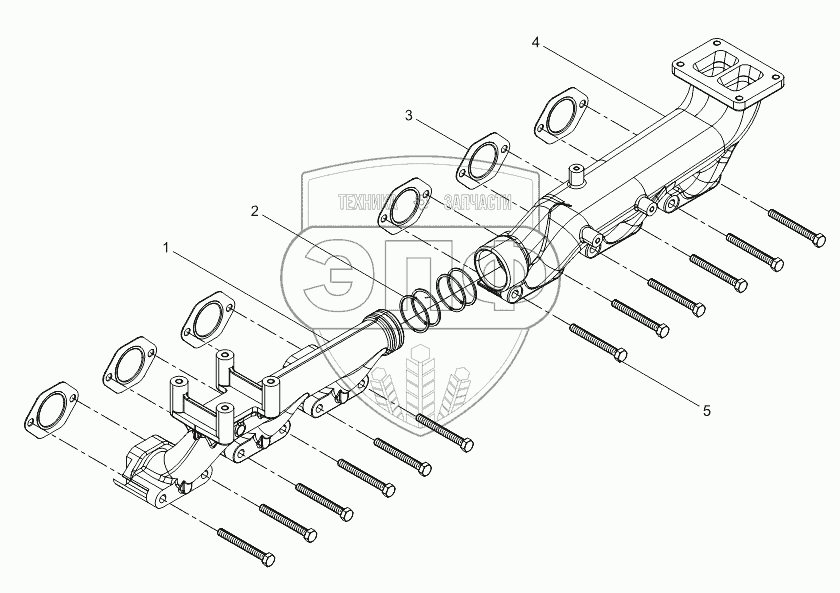 Каталог запасных частей к технике: Weichai WD10G220E23 (Евро 2). Exhaust Manifold Group
