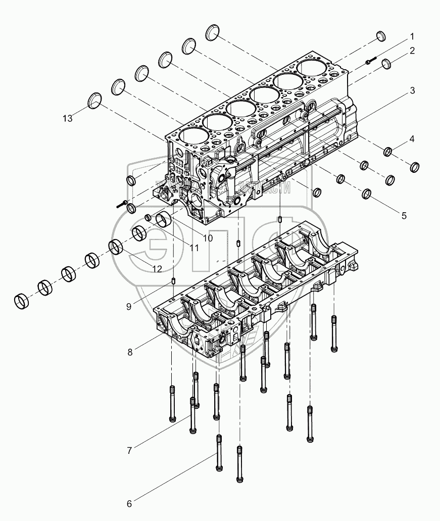 Каталог запасных частей к технике: Weichai WD10G220E23 (Евро 2). Pre-assembled cylinder block