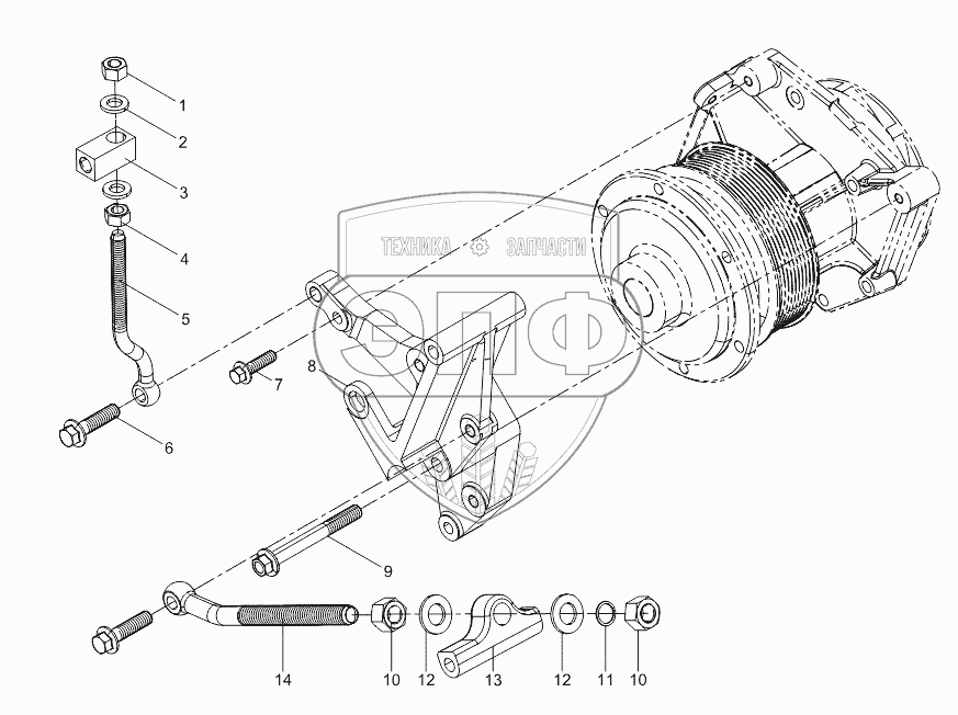 Каталог запасных частей к технике: Weichai WP10336N (Евро 3). Generator Bracket Group