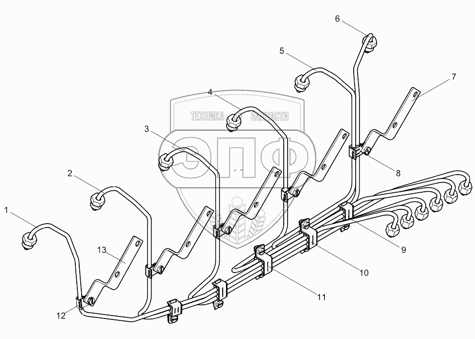 Каталог запасных частей к технике: Weichai WP10340E32 (Евро 2). High pressure pipe assembly
