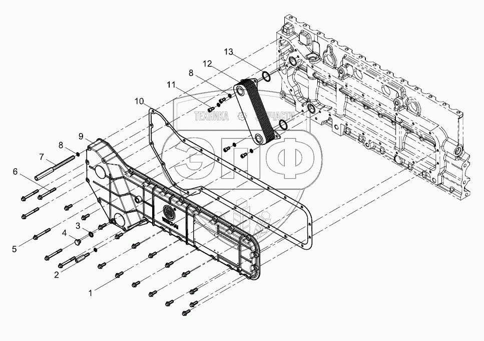Каталог запасных частей к технике: Weichai WP10340E32 (Евро 2). Oil cooler assembly