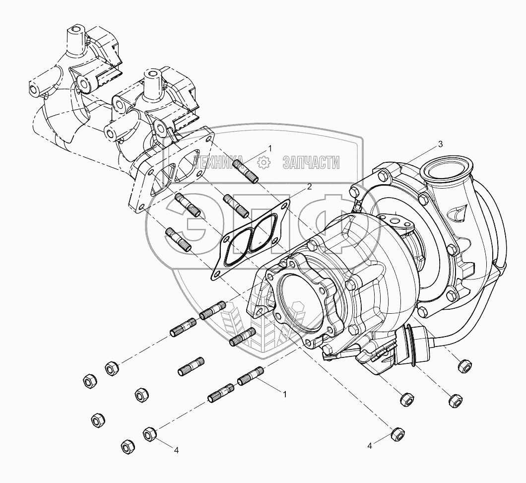 Каталог запасных частей к технике: Weichai WP10340E32 (Евро 2). Turbocharger assembly