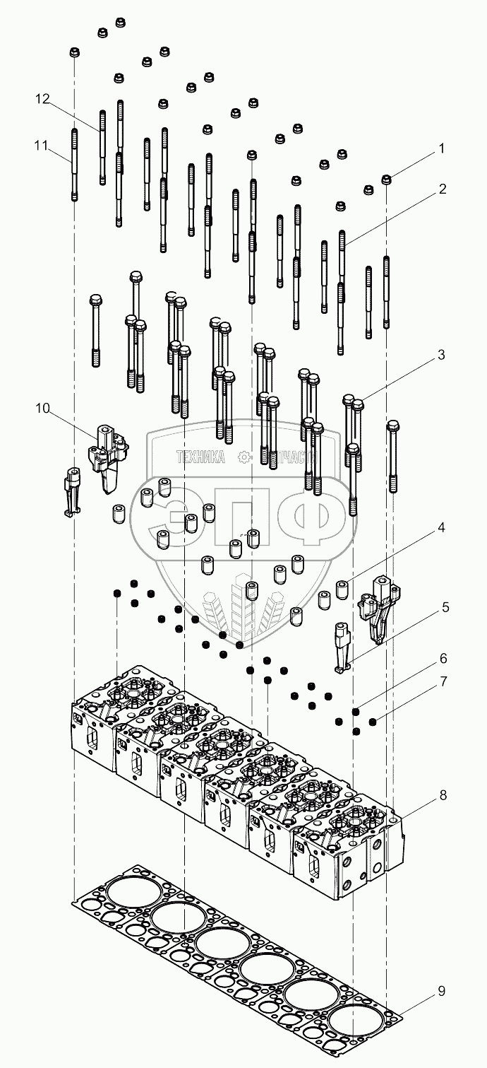 Каталог запасных частей к технике: Weichai WP10 DHL10Q0213. Cylinder Head Subassembly