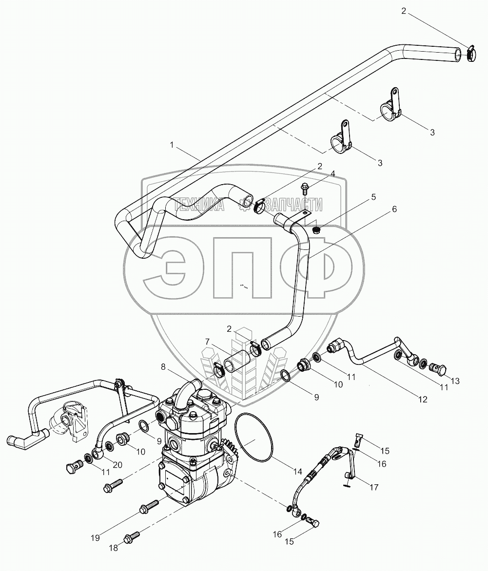 | 20 | 612600130355 | Water return pipe assembly of air compressor | Нет на складе |