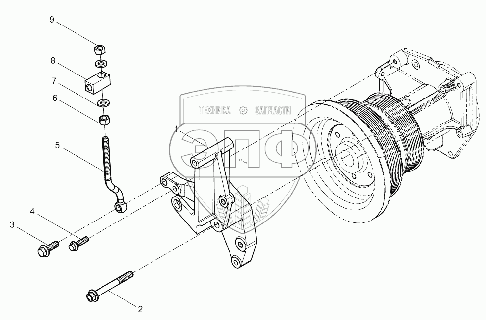 Каталог запасных частей к технике: Weichai WP10 DHP10Q0168. Generator Bracket Group