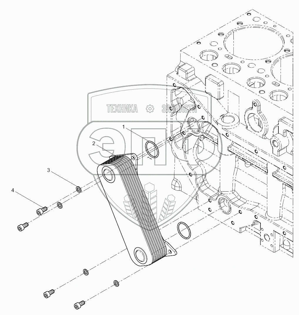 Каталог запасных частей к технике: Weichai WP10 DHP10Q0168. Oil cooler assembly