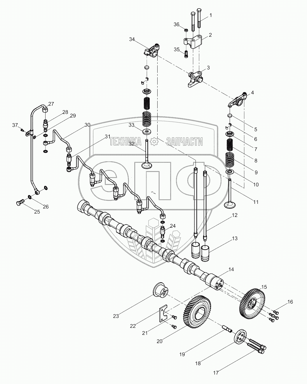 Каталог запасных частей к технике: Weichai WP10 DHP10Q0168. Valve Train Group
