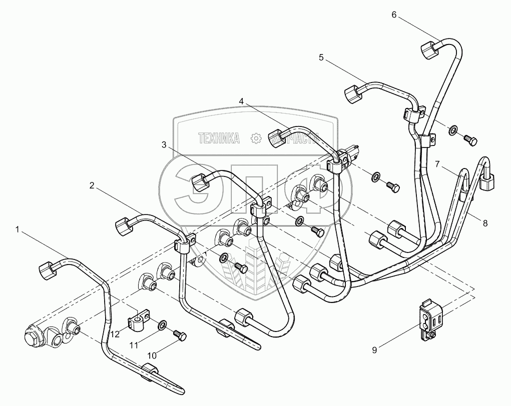 | 12 | 612600080672 | Зажим топливной трубки высокого давления | Нет на складе |