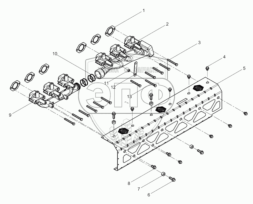 Каталог запасных частей к технике: Weichai WP10NG DHP10Q1667. Exhaust Manifold Group