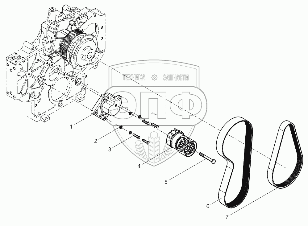 Каталог запасных частей к технике: Weichai WP10NG DHP10Q1667. Tensioner And Belt Group