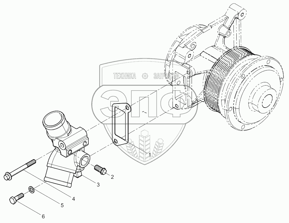 Каталог запасных частей к технике: Weichai WP10NG DHP10Q1667. Water Pipe Connector Group