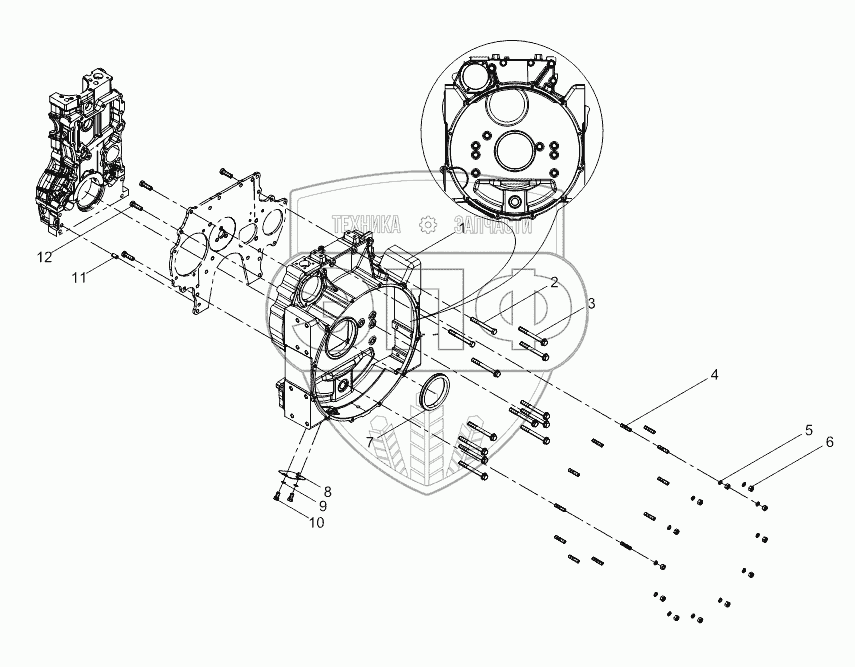 Каталог запасных частей к технике: Weichai WP12 375E40 (Евро 4). Flywheel Housing Group