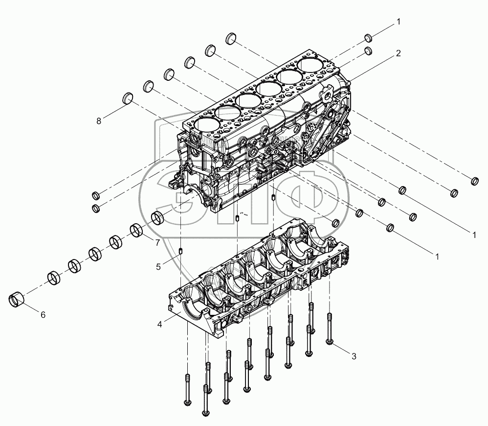 Каталог запасных частей к технике: Weichai WP12.375E50. Cylinder Block Preassembly