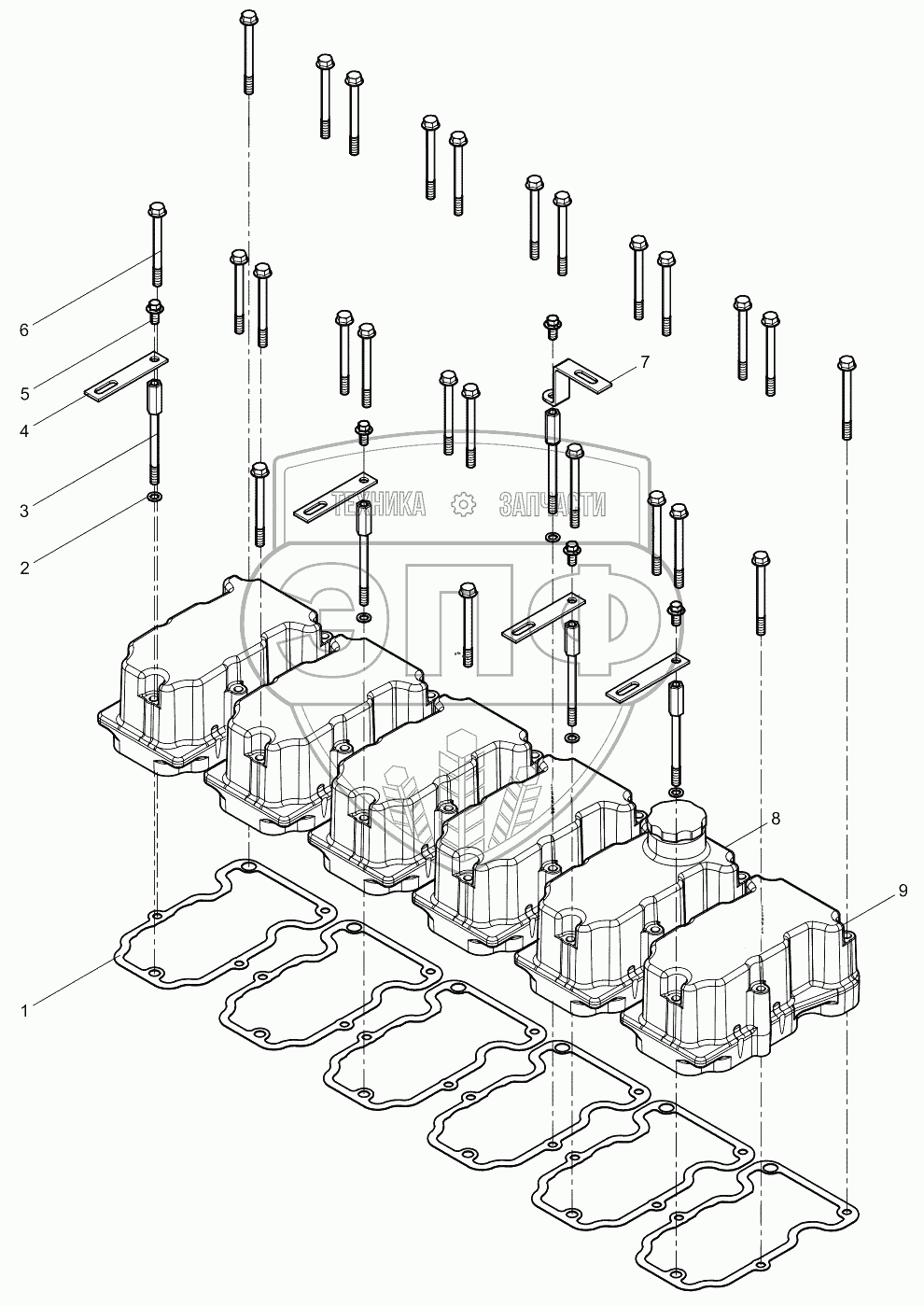 Каталог запасных частей к технике: Weichai WP12.375E50. Cylinder head cover set