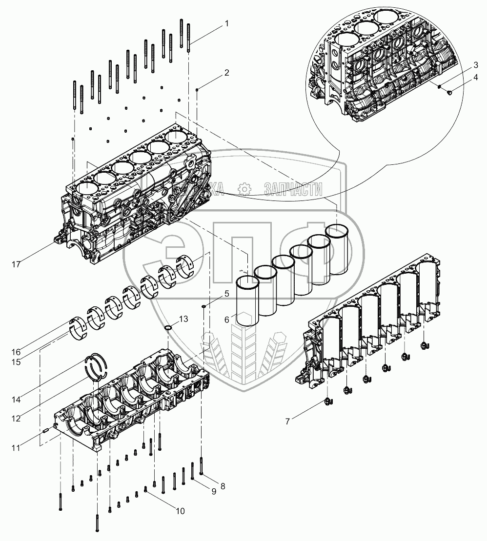 Каталог запасных частей к технике: Weichai WP12.375E50. Engine Block Group