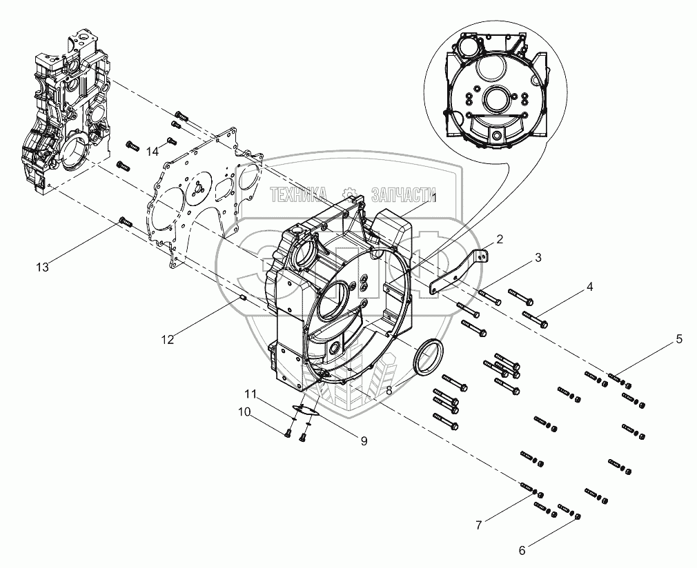 Каталог запасных частей к технике: Weichai WP12.375E50. Flywheel Housing Group