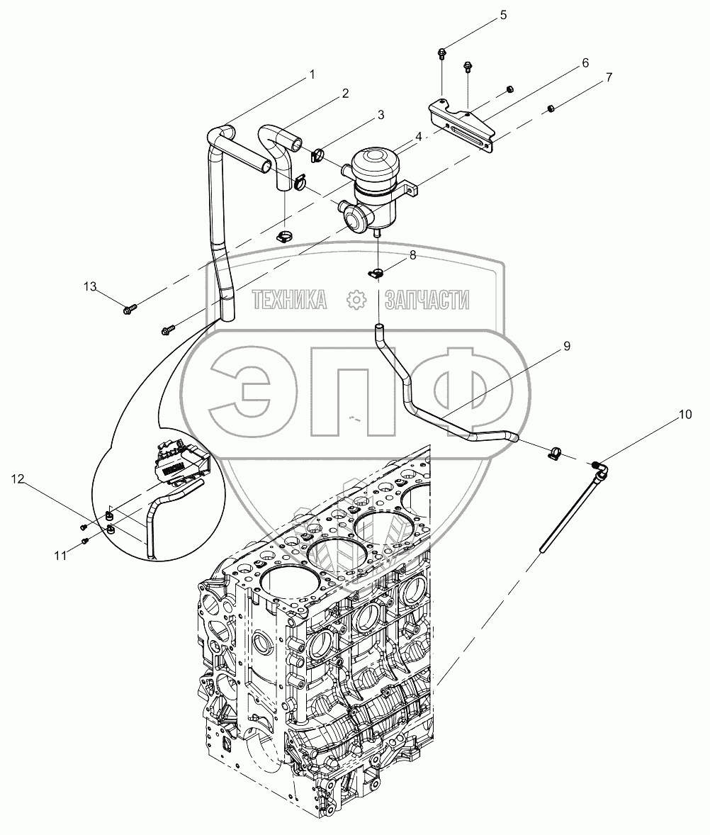 Каталог запасных частей к технике: Weichai WP12.375E50. Oil-gas Separator Group