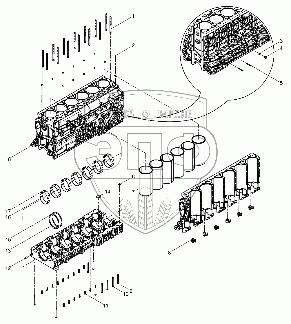 Каталог запасных частей к технике: Weichai WP12NG380E51. Engine Block Group