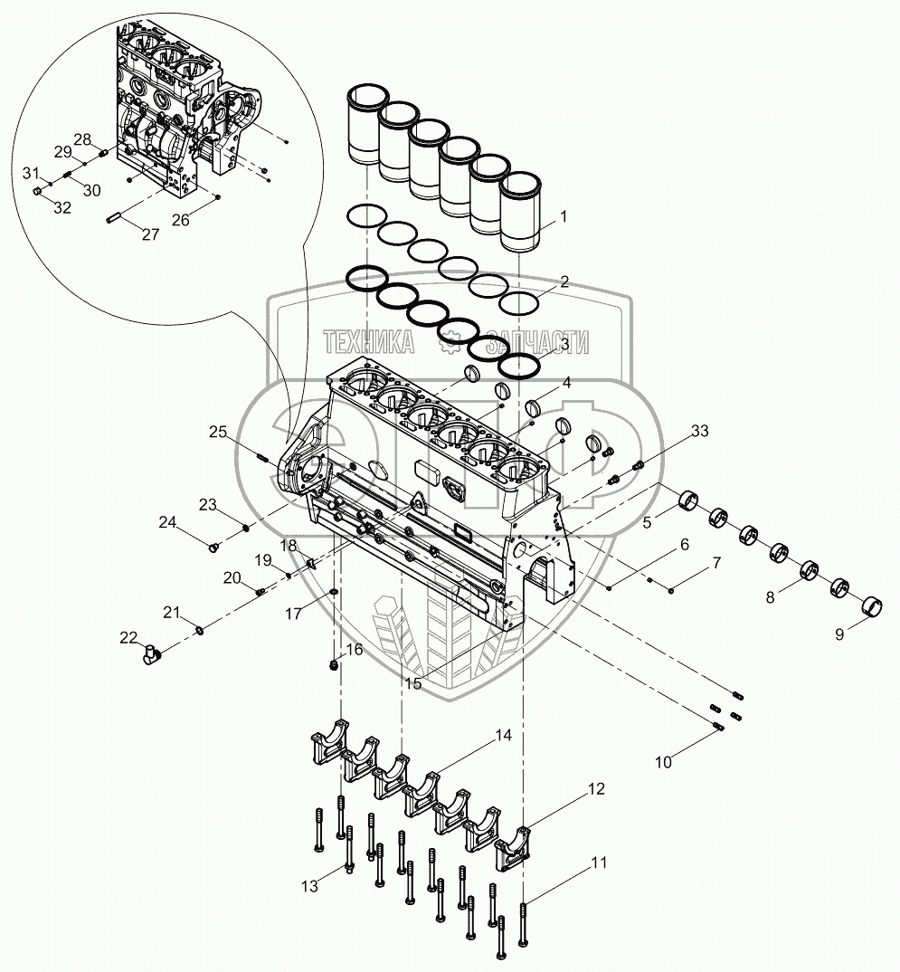 Каталог запасных частей к технике: Weichai WP6 DHB06D0018. Cylinder block subassembly