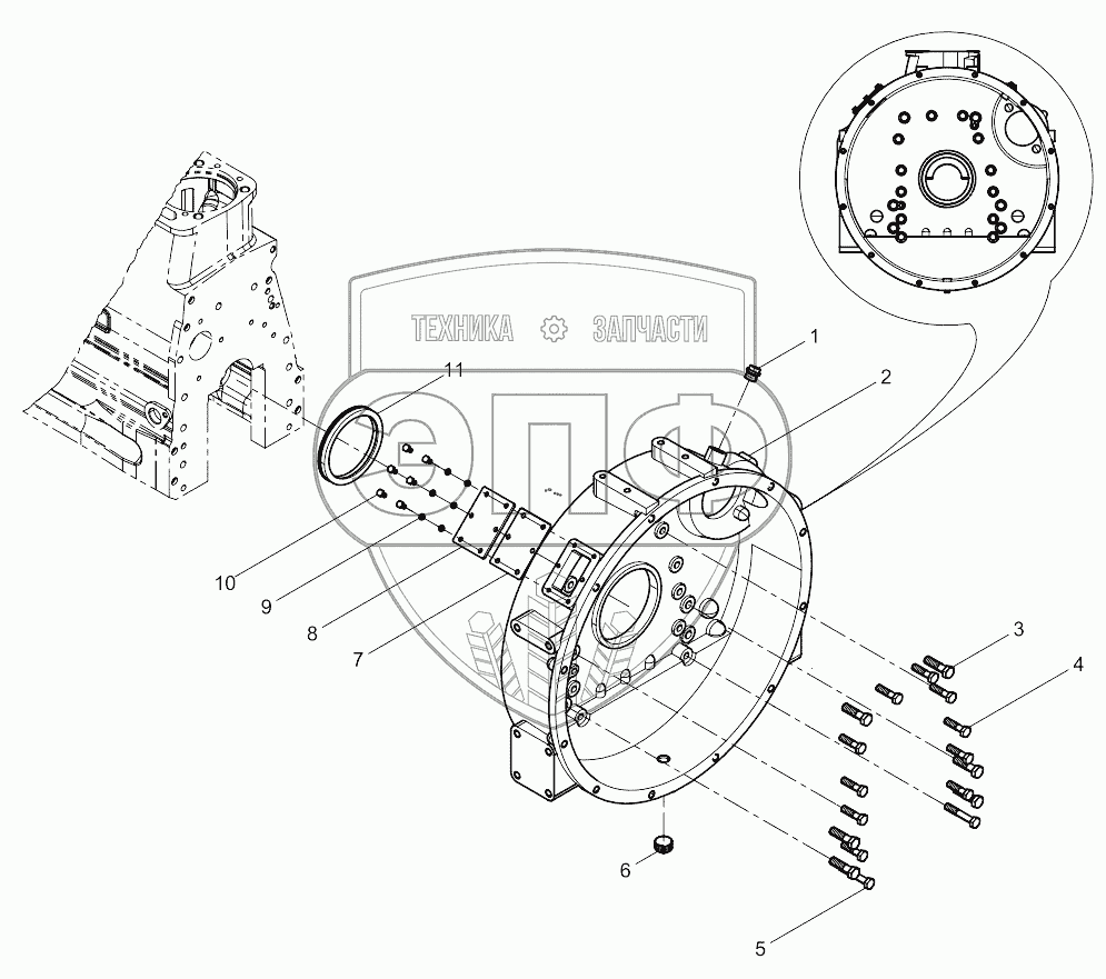 Каталог запасных частей к технике: Weichai WP6 DHB06G0131. Flywheel housing group
