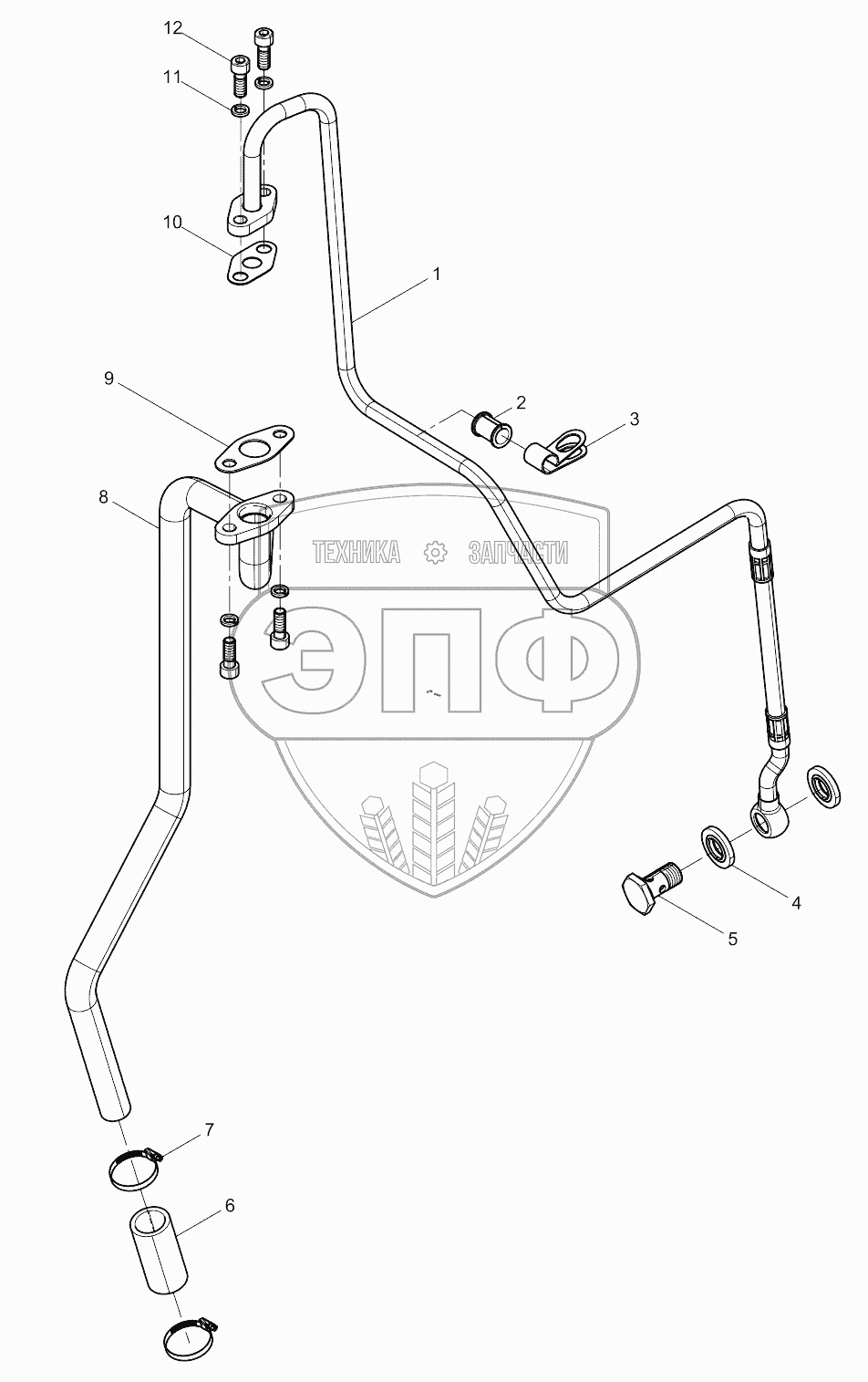 Каталог запасных частей к технике: Weichai WP6 DHB06G0131. Turbocharger lubricating oil pipe assembly