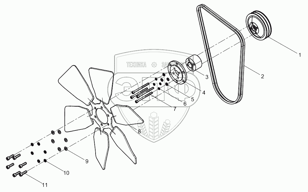 Каталог запасных частей к технике: Weichai WP6D132E200. Water Pump Pulley Assembly