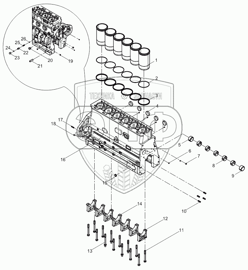 Каталог запасных частей к технике: Weichai WP6G125E22. Cylinder block subassembly