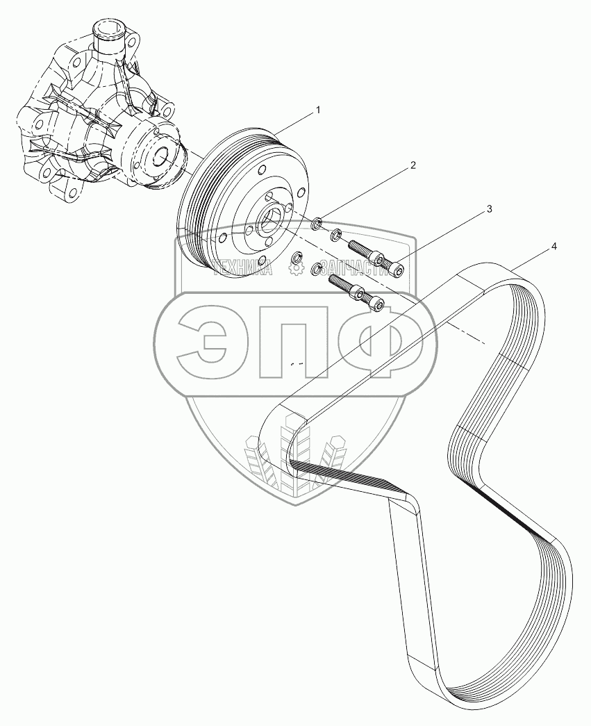 Каталог запасных частей к технике: Weichai WP6G125E22. Water Pump Pulley Assembly