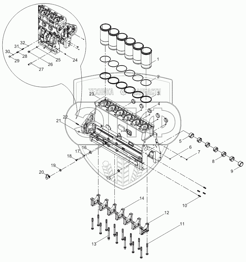 Каталог запасных частей к технике: Weichai WP6G140E22. Cylinder block subassembly