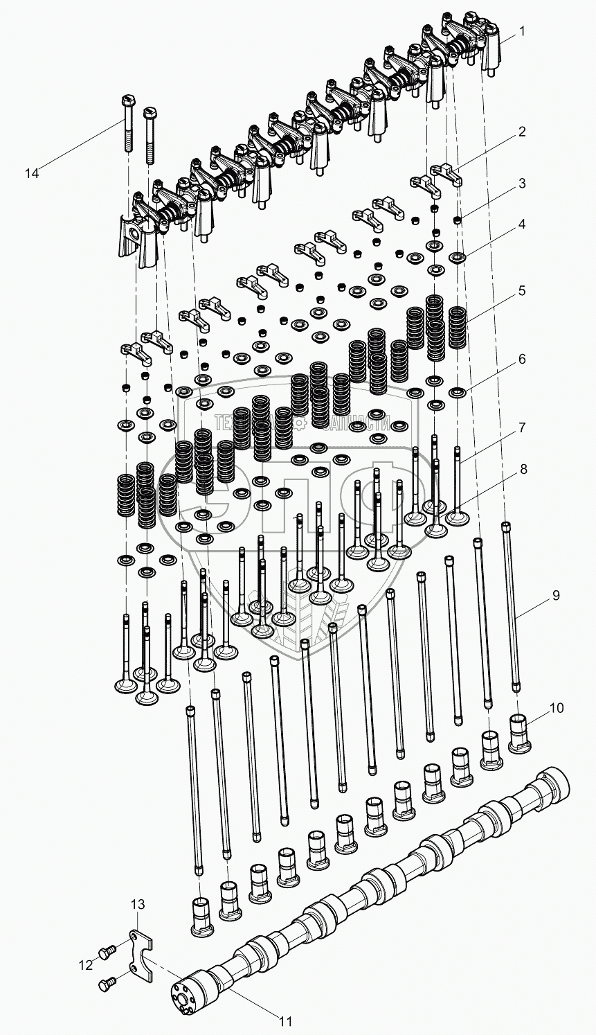 Каталог запасных частей к технике: Weichai WP7.300E51. Valve Train Group